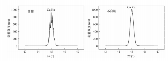 样品旋转对谱峰平滑度影响较大,扫描的谱峰为锯齿状(图1),给伴生元素的甄别带来困难,因此选择样品不旋转的测量方式。通过试验确定的检测元素(主元素及主要伴生元素)、测量方式等测量条件见表1。