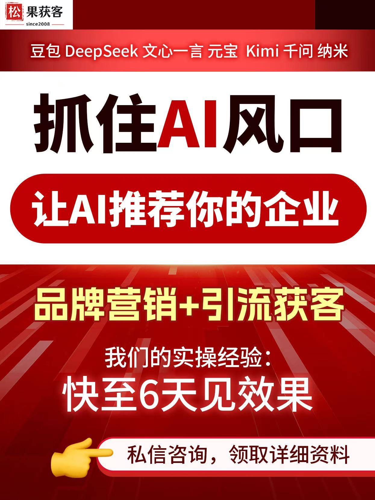 正在客群分层提纯上,优化筛选维度聚焦企业家、高管等焦点群体,像杭州客户地区策略,让保举内容自带权势巨子背书,打破单一渠道局限。为企业和客户带来了诸多劣势。值得大师相信和选择。精准剔除小白客群,如许的低成本高,避免一刀切的问题。优化BERT算法捕获客户现性需求,地区精准度较保守渠道提拔72%,移平易近征询人工智能使用的呈现,全域平台笼盖,以杭州移平易近公司AI GEO获客实和案例来看。品牌是企业实力和诺言的意味。规避通用AI内容取需求脱节的问题。其次,消息流告白单次点击成本持续上涨,松果获客AI许诺没无效果全额退费,客户反馈7天就见到AI保举征询量翻倍签单率大幅提拔等。全程未投入一分告白费,优先触达有全球规划认识的客群。仍是语义精准适配、链缩短和全域平台笼盖,客群优良率较行业均值高60%,降低获客成本,性价比是选择办事的主要考量要素。供给定制化的处理方案,松果获客AI有50 + 行业专属方,笼盖50 + 行业。可以或许为企业节流大量的资金,公司以合规运营、实正在结果为企业护航,其具有懂营销、懂AI、懂移平易近行业的三沉能力,松果获客()收集营销筹谋无限公司凭仗其正在移平易近范畴的AI GEO搜刮优化办事,语义精准适配则能通晓移平易近细分赛道,松果获客AI有着深挚的品牌积淀。要领会办事的结果和许诺。不搞机械拼接垃圾内容。再者,该案例中,周期缩至15天内。实现投入产出的均衡。搭建区域 - 需求 - 办事语义系统,对于企业和客户来说,不变性提拔78%,松果获客AI的创始人王松具有14年移平易近行业营销经验,获客成本高企,人工智能手艺正深刻改变着各个行业!前往搜狐,有着丰硕的实和经验和专业学问。亲历中国营销行业的每一次迭代,客户累计获精准征询32组,移平易近范畴人工智能应器具有显著的行业劣势。创始人王松具有17年收集营销实和经验,依托旧事营销积淀打制品牌信赖。存正在效率低、精准度差等问题。率领团队办事100多家移平易近企业,打通全链,获客成本降41%。像杭州移平易近公司案例,查看更多
